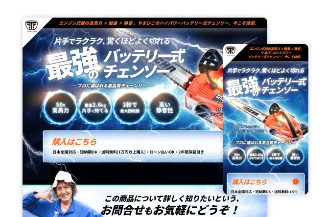 長野県小布施町 農機具販売会社 電動チェンソーLP制作